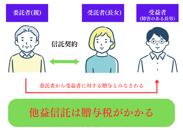 先ほど、委託者と受益者が異なる「他益信託」を設計してしまうと、贈与税がかかると解説しました。