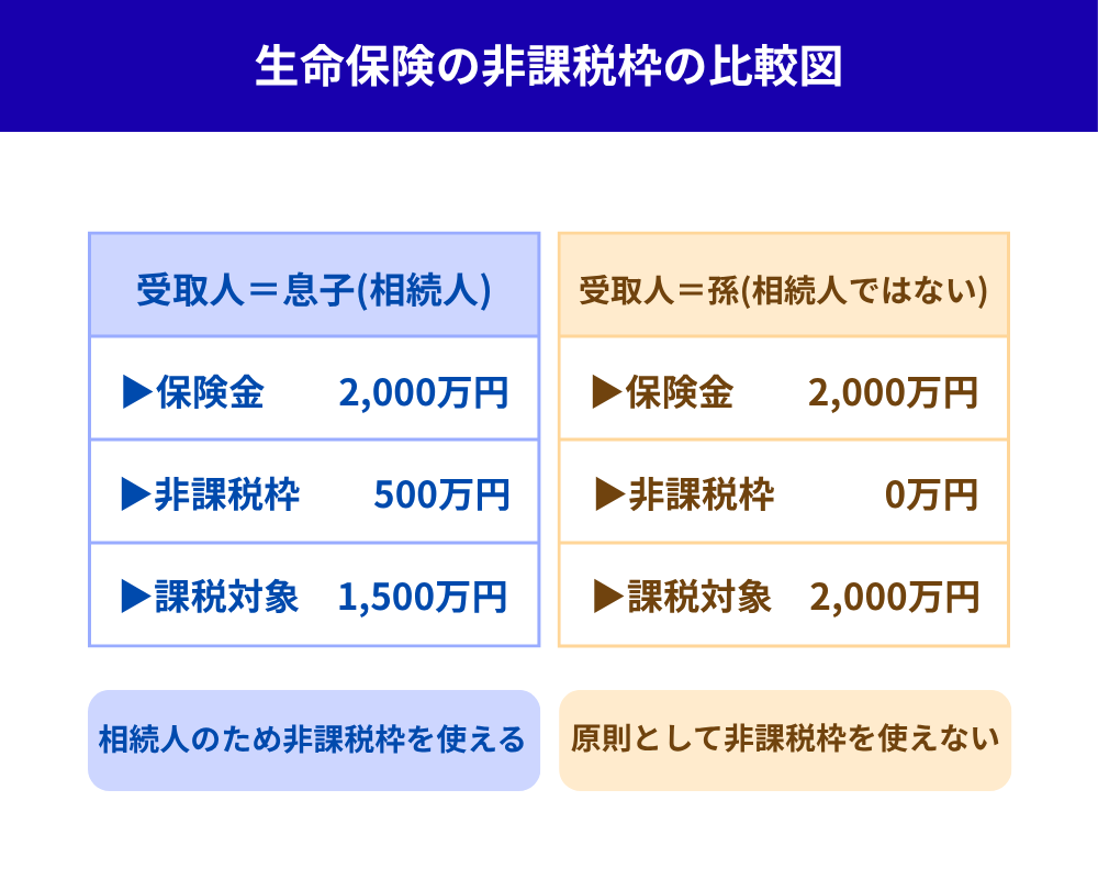 受取人が法定相続人(息子)になることで、500万円の非課税枠がフル活用できるようになります。